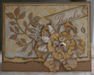 Cuttlebug Divine Swirl Embossing Folder, Cosmo Cricket pps, Sizzix leaves and Tim Holtz Flower die cuts, and Stampin' Up Sentiment. Stop by the Cropstop Store and check out all of the wonderful Cuttlebug and Sizzix products. Don't forget to grab the discount code from the sidebar before placing your order!!